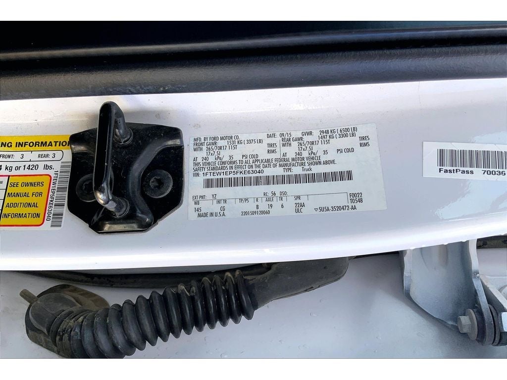 Bluetooth® technology is built into this 2015 Ford F-150 , keeping your hands on the steering wheel and your focus on the road. This vehicle has a V6, 2.7L high output engine. Greater towing safety becomes standard with the installed trailer brake. This model shines with clean polished lines coated with an elegant white finish. Set the temperature exactly where you are most comfortable in this vehicle. The fan speed and temperature will automatically adjust to maintain your preferred zone climate. This 1/2 ton pickup has four wheel drive capabilities. The premium quality running boards make it easier to get in and out of this 2015 Ford F-150 and give it a nice look too. The vehicle has an automatic transmission. Easily set your speed in the vehicle with a state of the art cruise control system. Increase or decrease velocity with the touch of a button. This 1/2 ton pickup is equipped with a gasoline engine.
