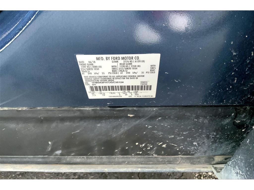 Equipment Group 301A: 3.65 Axle Ratio; 20" Premium Luster Nickel-Painted Aluminum Wheels; Perforated Leather Heated/cooled Bucket Seats; 6-Speed SelectShift Automatic Transmission; 2.3L I-4 EcoBoost Engine; P255/50R20 AS BSW Tires; 6. 160 lbs GVWR; Inflatable Rear Safety Belts; Sony Audio System with CD Player; Multi-Contour Front Seats with Active Motion; Enhanced Active Park Assist with Parallel Park. Ford Safe and Smart Package: Auto High-Beam Headlights; Rain-Sensing Wipers (front Only); Adaptive Cruise Control and Forward Collision Warning; BLIS (Blind Spot Information System); Lane-Keeping System. Twin Panel Moonroof. Inflatable Rear Safety Belts. Front and Second Row Floor Liners. **Equipment listed is based on original vehicle build and subject to change. Please confirm the accuracy of the included equipment by calling the dealer prior to purchase.**