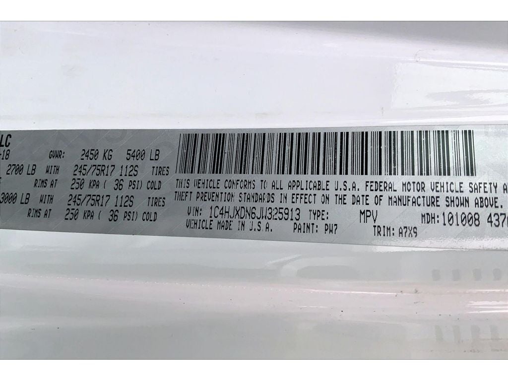 Cold Weather Group: Remote Start System; Heated Front Seats; Heated Steering Wheel. Convenience Group: Universal Garage Door Opener. Quick Order Package 28S Sport S: Front 1-Touch Down Power Windows; Speed Sensitive Power Locks; Power Heated Mirrors; Automatic Headlamps; Leather Wrapped Steering Wheel; Deep Tint Sunscreen Windows; 17" X 7.5" Tech Silver Aluminum Wheels; Security Alarm; Remote Keyless Entry; Sun Visors with Illuminated Vanity Mirrors. Technology Group: Google Android Auto; Cluster 7.0" TFT Color Display; SiriusXM Satellite Radio; USB Host Flip; Integrated Center Stack Radio; 7.0" Touchscreen Display; Air Conditioning with Auto Temp Control; Uconnect 4 Radio with 7" Display; Apple CarPlay; Air Filtering; GPS Antenna Input. Trailer Tow and Heavy Duty Electrical Group: Class II Receiver Hitch; 700 Amp Maintenance Free Battery; 7 and 4 Pin Wiring Harness; Auxiliary Switches; 240 Amp Alternator. Quick Order Package 23S Sport S: Front 1-Touch Down Power Windows; Speed Sensitive Power Locks; Power Heated Mirrors; Automatic Headlamps; Leather Wrapped Steering Wheel; Deep Tint Sunscreen Windows; 17" X 7.5" Tech Silver Aluminum Wheels; Security Alarm; Remote Keyless Entry; Sun Visors with Illuminated Vanity Mirrors. Alpine Premium Audio System. Black 3-Piece Hard Top. MOPAR Hardtop Headliner. SiriusXM Satellite Radio. MOPAR All-Weather Floor Mats. **Equipment listed is based on original vehicle build and subject to change. Please confirm the accuracy of the included equipment by calling the dealer prior to purchase.**