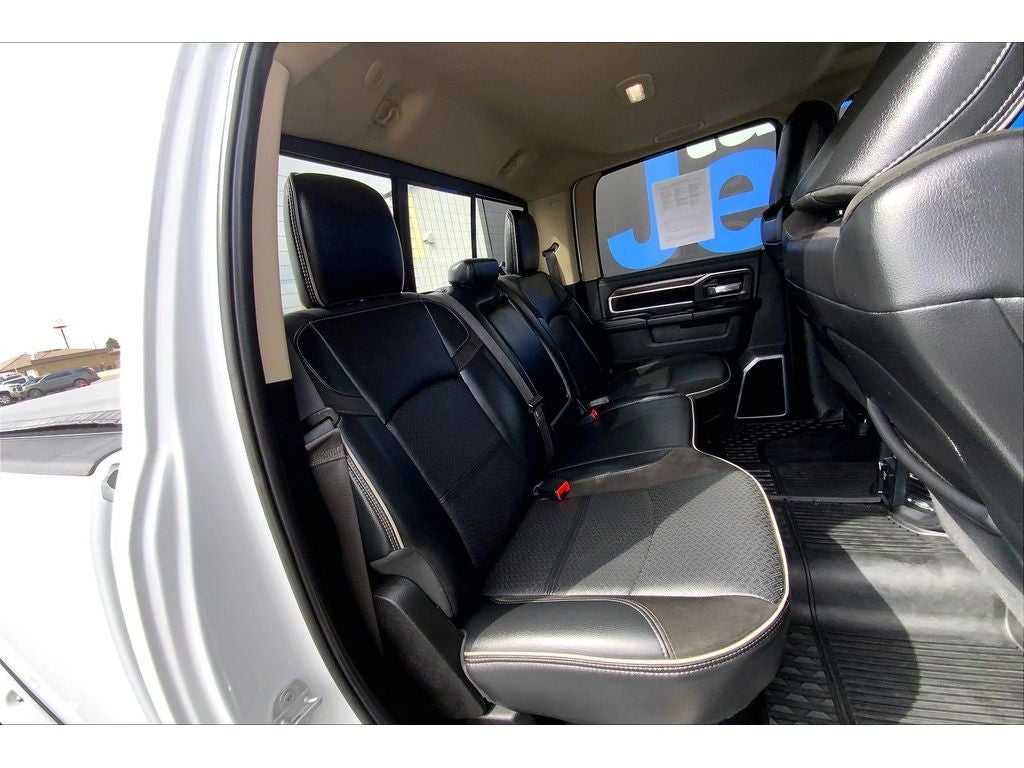 Cold Weather Group: Engine Block Heater; Winter Front Grille Cover. Quick Order Package 2HH Laramie. Laramie Level 1 Equipment Group: Remote Tailgate Release; Auto High Beam Headlamp Control; Blind Spot and Cross Path Detection; Rain Sensitive Windshield Wipers; Power Adjustable Pedals with Memory; Foam Bottle Insert (door Trim Panel); 2nd Row in Floor Storage Bins; Radio/driver Seat/mirrors/pedals Memory; Ventilated Front Seats. Off Road Package. Safety Group: Auto High Beam Headlamp Control; Blind Spot and Cross Path Detection; Rain Sensitive Windshield Wipers; Adaptive Cruise Control with Stop; Adaptive Steering System; Full Speed Forward Collision Warning Plus; Lane Keep Assist. Towing Technology Group: Center Stop Lamp with Cargo View Camera; Surround View Camera System; Blind Spot and Cross Path Detection; Trailer Reverse Guidance. Protection Group. Uconnect Radio 12.0 with Navigation. 20" X 8.0" Polished Aluminum Wheels. Power Sunroof. Chrome Flat Cab-Length Side Steps. Blind Spot and Cross Path Detection. 5th Wheel/gooseneck Towing Prep Group. Anti-Spin Differential Rear Axle. Center Stop Lamp with Cargo View Camera. Adaptive Steering System. LED Bed Lighting. Instrument Panel Mounted Auxiliary Switches. **Equipment listed is based on original vehicle build and subject to change. Please confirm the accuracy of the included equipment by calling the dealer prior to purchase.**