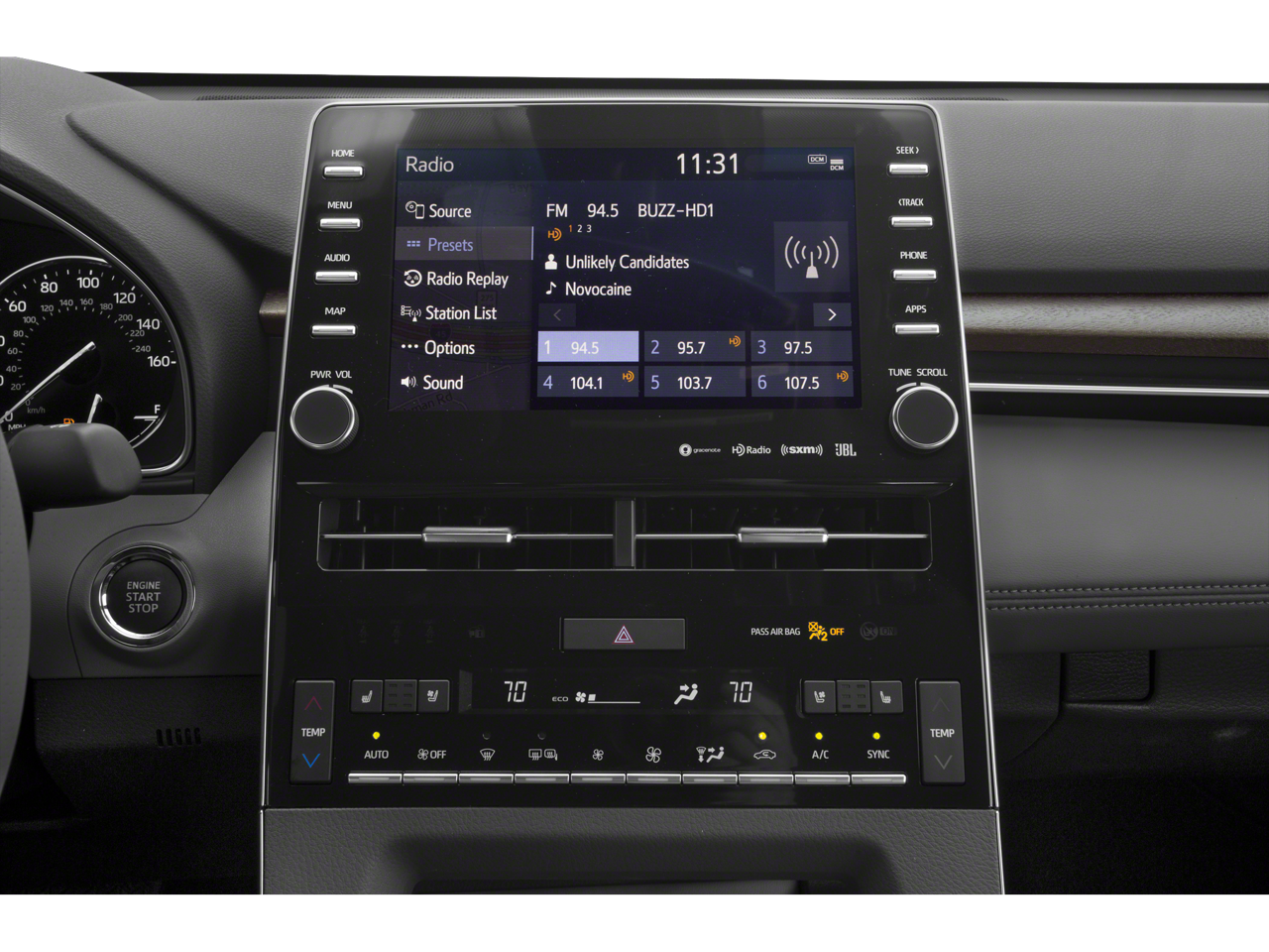 - Radio: Premium Audio w/JBL & Clari-Fi -inc: 14 speakers, subwoofer, 1200-watt amplifier, 9" touch screen, Amazon Alexa in-car app, Apple CarPlay, auxiliary audio jack, a USB 2.0 port w/iPod connectivity and control, dynamic navigation w/dynamic POI search and 3-year trial, dynamic voice recognition w/3-year trial, Bluetooth® hands-free phone capability and music streaming, Entune app suite, Siri Eyes Free, HD Radio, SiriusXM Satellite Radio w/3-month all-access trial, Entune 3.0 Toyota Connected Services, Safety Connect w/3-year trial, Service Connect w/3-year trial, Remote Connect w/6-month trial, Wi-Fi Connect up to 2GB w/6-month trial, Destination Assist Connect w/6-month trial