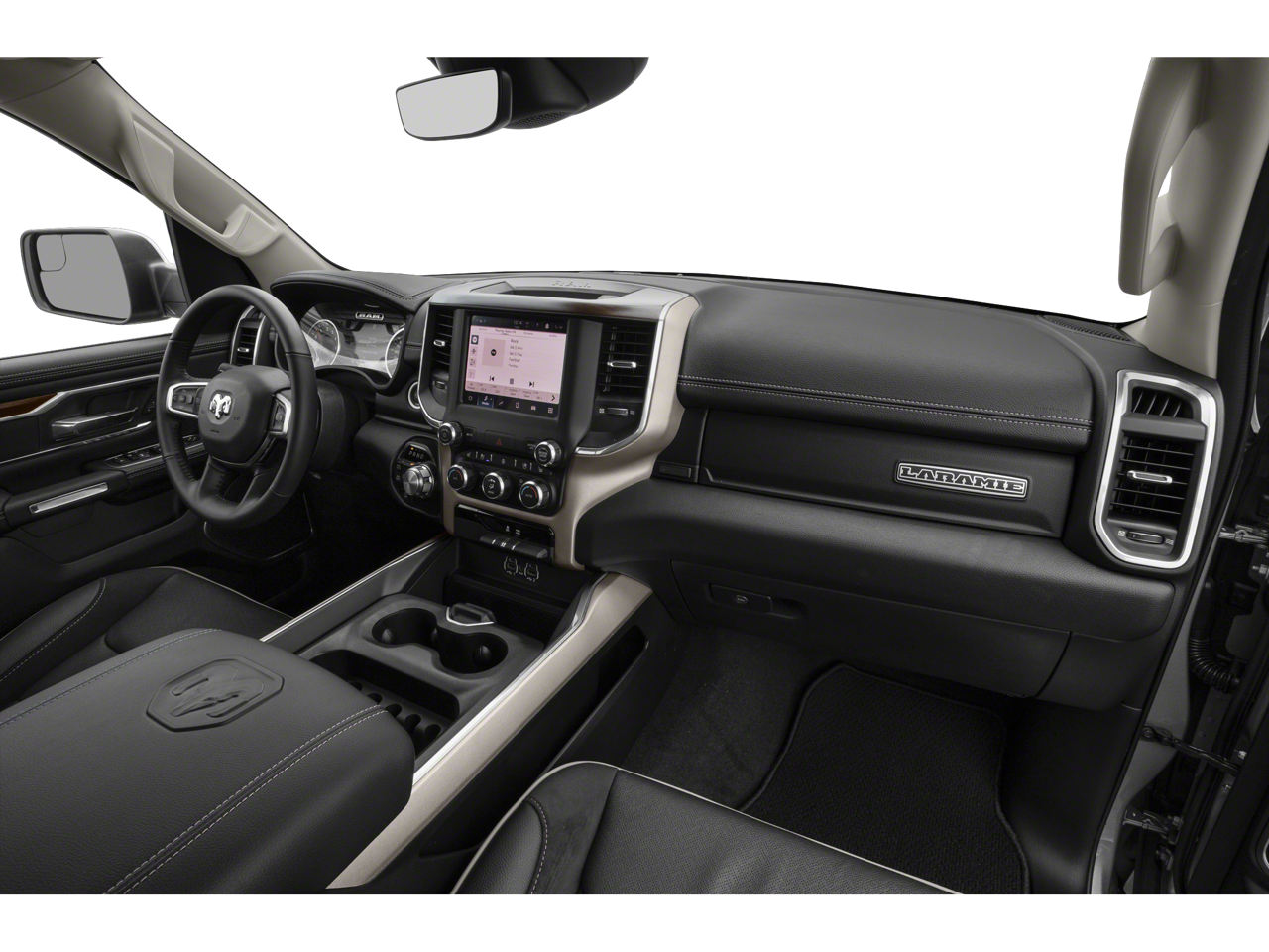 Quick Order Package 28H Laramie. Laramie Level 1 Equipment Group: Remote Tailgate Release; Rear Underseat Compartment Storage; Auto High Beam Headlamp Control; Blind Spot and Cross Path Detection; Rain Sensitive Windshield Wipers; ParkSense Front/rear Park Assist with Stop; Foam Bottle Insert (door Trim Panel); Rear 60/40 Folding Split Recline Seat. Leather Trimmed Bucket Seats. ParkSense Front/rear Park Assist with Stop. MOPAR Front and Rear Rubber Floor Mats. Rear Underseat Compartment Storage. **Equipment listed is based on original vehicle build and subject to change. Please confirm the accuracy of the included equipment by calling the dealer prior to purchase.**