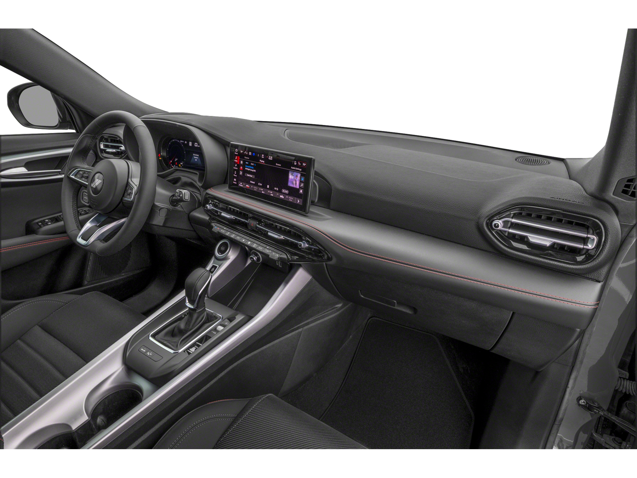 - Alcantara simulated suede and leather front seat upholstery