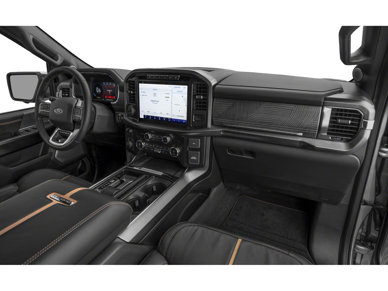 Max Trailer Tow Package: Integrated Trailer Brake Controller; Class IV Trailer Hitch Receiver; Extended Range 36 Gallon Fuel Tank; Pro Trailer Backup Assist and Pro Trailer Hitch Assist. Equipment Group 701A High: 275/60R20 BSW AT Tires; 360 Degree Camera; B&O Unleashed Sound System by Bang & Olufsen Radio; Pro Trailer Backup Assist and Pro Trailer Hitch Assist; Electronic 10-Speed Automatic Transmission; 7. 050 lbs Payload Package GVWR. Platinum Black Appearance: Black Front Tow Hooks; Dual Exhaust with Black Tips; Dark-Tinted Taillamps; Unique Multi-Contour Leather Bucket Seats; Black Exterior Badging; 20" Gloss Black Painted Aluminum Wheels; Black Belt Moldings; Unique Hood and Grille with Black Accent; Body-Color Door Handles and Mirror Caps; Power-Deployable Running Boards with Black Accent; Dark Interior Appliques; Black Tailgate Applique; Black Taillamp Bezels. Ford BlueCruise 1.0: Active Park Assist 2.0. Bed Utility Package: BoxLink; LED Box Lighting; Tailgate Step with Tailgate Work Surface; Power Tailgate. Twin Panel Moonroof. Pro Power Onboard - 2KW. 360 Degree Camera. Tough Bed Spray-In Bedliner. Electronic Locking with 3.55 Axle Ratio. Extended Range 36 Gallon Fuel Tank. Interior Work Surface. Wheel Well Liner. BoxLink. **Equipment listed is based on original vehicle build and subject to change. Please confirm the accuracy of the included equipment by calling the dealer prior to purchase.**