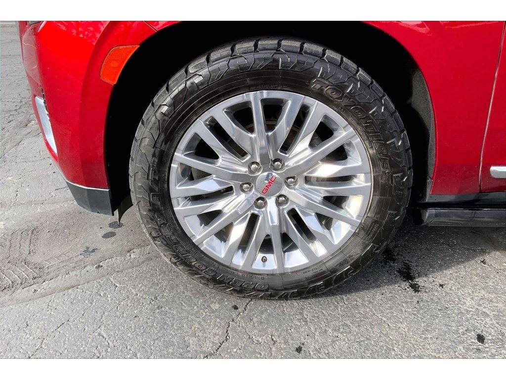 Max Trailering Package: Extra Capacity Cooling System. ProGrade Trailering System: Trailer Side Blind Zone Alert; Smart Trailer Integration Indicator; Integrated Trailer Brake Controller; Hitch Guidance with Hitch View. Preferred Equipment Group 5SA: Bright Front and Rear Door Sill Plates; 2 Presets For Outside Rearview Mirrors; 3rd Row 60/40 Power-Folding Split-Bench Seat; Safety Alert Seat; Chrome Door Handles with Body-Color Strip; Hill Descent Control; 3 Years of OnStar Safety and Security; 6.2L EcoTec3 V8 Engine; Heated Steering Wheel; Heated Driver and Front Passenger Seats; Wireless Charging; Universal Home Remote; 3 Years of GMC Connected Services; Heated 2nd Row Outboard Position Seats; Hands-Free Power Programmable Rear Liftgate; 2-Speed Electronic Autotrac Active Transfer Case; Floor Console; Dual Exhaust System; GMC Pro Safety Plus; HD Surround Vision; Heated and Ventilated Driver and Front Passenger Seats; Power Tilt and Telescopic Steering Column; 15" Diagonal Multi-Color Head-Up Display; Rear Pedestrian Alert; Bose 14-Speaker Surround with CenterPoint; Magnetic Ride Control Suspension; Inside Rearview Auto-Dimming Mirror; Power Release 2nd Row Bucket Seats; Enhanced Automatic Emergency Braking; Outside Heated Power-Adjustable Mirrors; Galvano Bodyside Moldings. Power-Retractable Assist Steps. Dual-Pane Panoramic Power Sunroof. 22" X 9" Polished Aluminum Wheels. Air Ride Adaptive Suspension. 3 Years of OnStar Safety and Security. Volcanic Red Tintcoat. Wheel Locks (set of 4). **Equipment listed is based on original vehicle build and subject to change. Please confirm the accuracy of the included equipment by calling the dealer prior to purchase.**