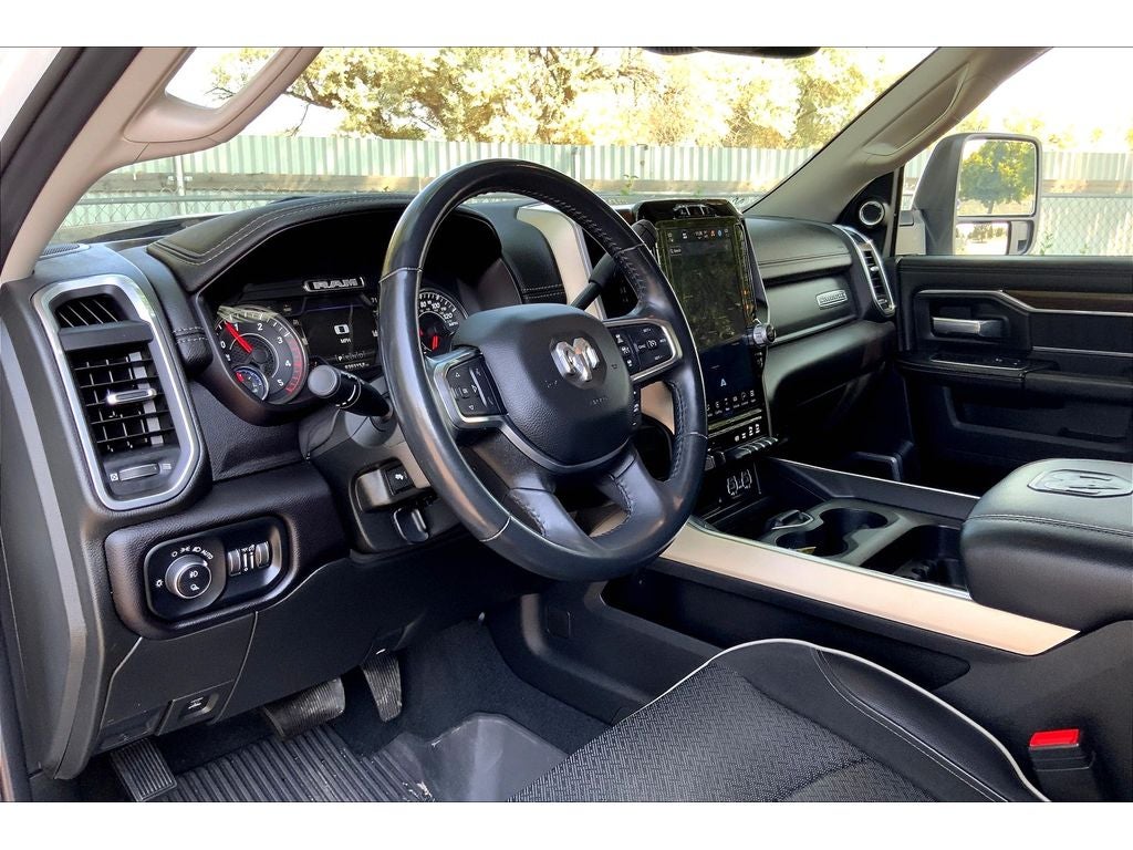 Cold Weather Group: Engine Block Heater; MOPAR Winter Front Grille Cover. Quick Order Package 21H Laramie. Safety Group: Auto High Beam Headlamp Control; Rain Sensitive Windshield Wipers; Adaptive Cruise Control with Stop; Adaptive Steering System; Full Speed Forward Collision Warning Plus; Lane Keep Assist. Towing Technology Group: Center Stop Lamp with Cargo View Camera; Surround View Camera System; Trailer Reverse Guidance. Bed Utility Group: MOPAR Spray in Bedliner; MOPAR Deployable Bed Step; LED Bed Lighting. Laramie Level Fequipment Group: Google Android Auto; Rear Window Defroster; Blind Spot and Cross Path Detection; Rain Sensitive Windshield Wipers; Power Adjustable Pedals with Memory; Rear Power Sliding Window; Integrated Voice Command with Bluetooth®; Connectivity - US/Canada; 12" Touchscreen Display; Auto Power-Folding Mirrors; GPS Navigation; GPS Antenna Input; Exterior Mirrors with Heating Element; Auto Dim Exterior Mirror; SiriusXM with 360L; Connected Travel and Traffic Services; Front LED Fog Lamps; Heated Second Row Seats; LED Reflector Headlamps; Mirror Running Lights; Foam Bottle Insert (door Trim Panel); Alexa Built-In; Apple CarPlay; Power-Adjustable Convex Aux Mirrors; Off-Road Information Pages; Forward and Reverse Utility Lights; Selectable Tire Fill Alert; Trailer Tow Pages; Disassociated Touchscreen Display; HD Radio; Ramcharger Wireless Charging Pad; Uconnect 5 Navigation with 12.0" Display Radio; Power Heated Folding Telescopic Mirrors with Memory; Exterior Mirrors with Supplemental Signals; Exterior Mirrors Courtesy Lamps; Remote Tailgate Release; 17 Speaker Harman Kardon Premium Sound; Auto High Beam Headlamp Control; Chrome Exterior Mirrors; Exterior Mirrors with Memory; Power Adjust Mirrors; Power Telescoping Mirrors; Auto Dimming Exterior Passenger Mirror; Auto Adjust in Reverse Exterior Mirrors; ParkSense Front/rear Park Assist System. Chrome Bumper Package: Bright Rear Bumper; Bright Front Bumper. Chrome Flat Wheel-To-wheel Side Steps. MOPAR Spray in Bedliner. Blind Spot and Cross Path Detection. Leather Trimmed Bucket Seats. 5th Wheel/gooseneck Towing Prep Group. Trailer Tire Pressure Monitoring System. Center Stop Lamp with Cargo View Camera. Adaptive Steering System. MOPAR Front and Rear Rubber Floor Mats. **Equipment listed is based on original vehicle build and subject to change. Please confirm the accuracy of the included equipment by calling the dealer prior to purchase.**