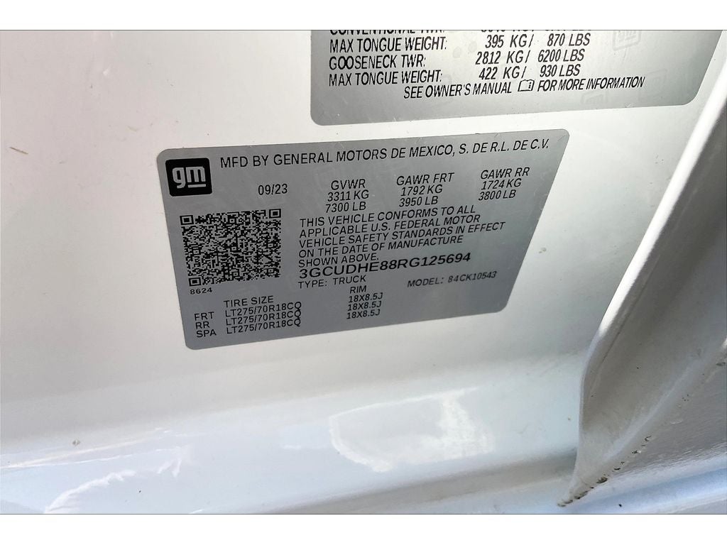 Dark Essentials Package: Black Name Plates; Black Tailgate CHEVROLET Lettering. Technology Package: Power Tilt and Telescoping Steering Column; 15" Diagonal Multicolor Head-Up Display; Rear Camera Mirror; Adaptive Cruise Control. Preferred Equipment Group 3LT: Trailer Side Blind Zone Alert; Driver Memory; Perforated Leather Seat Trim; SiriusXM with 360L; Power Sliding Rear Window with Rear Defogger; Safety Alert Seat; Trailer Camera Provisions; Electric Rear-Window Defogger; Rear Park Assist; Theft Deterrent System (unauthorized Entry); Front Rain-Sensing Wipers; Heavy-Duty Air Filter; Skid Plates; Heated Steering Wheel; 120-Volt Interior Power Outlet; Heated Driver & Front Outboard Passenger Seats; Front Bucket Seats; Color-Keyed Carpeting Floor Covering; OnStar and Chevrolet Connected Services Capable; 2nd Row Heated Outboard Seats; ZR2 Suspension Package; Power Front Passenger Windows with Express Up/down; 12.3" Multicolor Reconfigurable Digital Display; High Gloss Black Mirror Caps; Power Rear Windows with Express Down; Integrated Trailer Brake Controller; HD Surround Vision; Ventilated Driver and Front Passenger Seats; Manual Tilt/telescoping Steering Column; Keyless Open and Start; Perimeter Lighting; Auto-Dimming Inside Rearview Mirror; LED Cargo Area Lighting; Bluetooth® For Phone; Remote Vehicle Starter System; Trailering App; 18" X 8.5" Aluminum Machined Face Wheels; Hill Descent Control; Floor Mounted Center Console; Bed View Camera; Rear Cross Traffic Alert-Braking; Electrical Steering Column Lock; Trailering Package; Up-Level Rear Seat with Storage Package; Standard Tailgate; 2 USB Data Ports; Front LED Fog Lamps; 18" Aluminum Spare Wheel; Steering Wheel Audio Controls; Dual Rear USB Ports (charge Only); Universal Home Remote; Duramax 3.0L Turbo-Diesel I6 Engine; 2-Speed Transfer Case; Deep-Tinted Glass; 10-Way Power Driver Seat with Lumbar; All-Weather Floor Liner; Chevytec Spray-On Black Bedliner; Electronic Cruise Control; Chevy Safety Assist; Performance Red Recovery Hooks; Hitch Guidance with Hitch View; Power Front Windows with Driver Express Up/down; Wrapped Steering Wheel; EZ Lift Power Lock and Release Tailgate; Rear Pedestrian Alert; 10-Way Power Passenger Seat Adjuster with Lumbar; Outside Heated Power-Adjustable Mirrors; Rear Wheelhouse Liners; Auto-Locking Rear Differential. **Equipment listed is based on original vehicle build and subject to change. Please confirm the accuracy of the included equipment by calling the
