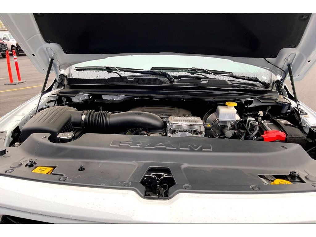 Quick Order Package 27H Laramie. Laramie Level 1 Equipment Group: Google Android Auto; SiriusXM Radio Service; USB Host Flip; Rear Window Defroster; Blind Spot and Cross Path Detection; Rain Sensitive Windshield Wipers; ParkSense Front/rear Park Assist with Stop; Power Adjustable Pedals with Memory; For Details. Visit DriveUconnect.com; For More Info. Call 800-643-2112; Rear Power Sliding Window; Integrated Voice Command with Bluetooth®; Connectivity - US/Canada; GPS Navigation; 4G LTE Wi-Fi Hot Spot; SiriusXM with 360L; Global Telematics Box Module; Connected Travel and Traffic Services; Front LED Fog Lamps; Heated Second Row Seats; LED Reflector Headlamps; Foam Bottle Insert (door Trim Panel); Apple CarPlay; HD Radio; Uconnect 5 Navigation with 12.0" Display Radio; Remote Tailgate Release; Auto High Beam Headlamp Control; Electric Shift on Demand Transfer Case; Front Door Accent Lighting; 2nd Row in Floor Storage Bins; Rear Door Accent Lighting. Sport Appearance Package: 275/55R20 OWL All Season Tires; Leather Trimmed Bucket Seats; Body Color Exterior Mirrors; Black Interior Accents; Body Color Premium Power Mirrors; Sport Performance Hood; Body Color Front Bumper; RAM Grille Badge - Chrome; Body Color Rear Bumper with Step Pads; Grille Surround 3 Body Color Tex 2 Black. 20" X 9" Premium Paint/polished Wheels. Leather Trimmed Bucket Seats. Anti-Spin Differential Rear Axle. ParkSense Front/rear Park Assist with Stop. 33 Gallon Fuel Tank. Class IV Receiver Hitch. Trailer Brake Control. 3.92 Rear Axle Ratio. MOPAR Front and Rear Rubber Floor Mats. **Equipment listed is based on original vehicle build and subject to change. Please confirm the accuracy of the included equipment by calling the dealer prior to purchase.**