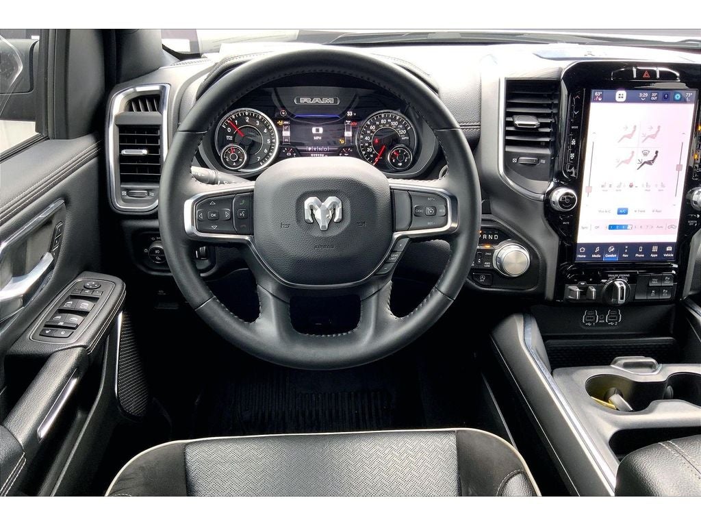 This vehicle is a certified CARFAX 1-owner. Protect this 1/2 ton pickup from unwanted accidents with a cutting edge backup camera system. This 1/2 ton pickup is pure luxury with a heated steering wheel. Our dealership has already run the CARFAX report and it is clean. A clean CARFAX is a great asset for resale value in the future. The installed navigation system will keep you on the right path. The vehicle's Forward Collision Warning feature alerts drivers to potential front-end collisions. This model offers Apple CarPlay for seamless connectivity. It keeps you comfortable with Auto Climate. This Ram 1500 offers Android Auto for seamless smartphone integration. The state of the art park assist system will guide you easily into any spot. The leather seats in the Ram 1500 are a must for buyers looking for comfort, durability, and style. This unit features a hands-free Bluetooth® phone system. The Ram 1500 is equipped with the latest generation of XM/Sirius Radio.