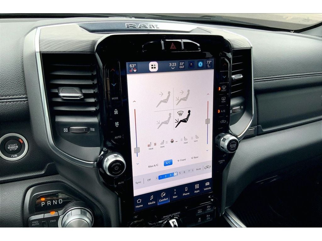 Laramie Level 1 Equipment Group: Google Android Auto; SiriusXM Radio Service; USB Host Flip; Rear Window Defroster; Blind Spot and Cross Path Detection; Rain Sensitive Windshield Wipers; ParkSense Front/rear Park Assist with Stop; Power Adjustable Pedals with Memory; For Details. Visit DriveUconnect.com; For More Info. Call 800-643-2112; Rear Power Sliding Window; Integrated Voice Command with Bluetooth®; Connectivity - US/Canada; GPS Navigation; 4G LTE Wi-Fi Hot Spot; SiriusXM with 360L; Global Telematics Box Module; Connected Travel and Traffic Services; Front LED Fog Lamps; Heated Second Row Seats; LED Reflector Headlamps; Foam Bottle Insert (door Trim Panel); Apple CarPlay; HD Radio; Remote Tailgate Release; Auto High Beam Headlamp Control; Electric Shift on Demand Transfer Case; Front Door Accent Lighting; 2nd Row in Floor Storage Bins; Rear Door Accent Lighting. Quick Order Package 27H Laramie. Bed Utility Group. Trailer Tow Group: Mirror-Mounted Aux Reverse Lamps; Chrome Power-Fold Trailer Tow Mirrors; Exterior Mirrors with Supplemental Signals; Trailer Reverse Steering Control; Exterior Mirrors Courtesy Lamps; Trailer Tire Pressure Monitoring System; Trailer Light Check; Exterior Mirrors with Heating Element; Trailer Brake Control; Chrome Exterior Mirrors; Exterior Mirrors with Memory; Mirror Clearance/running Lights; Power-Folding Mirrors. Leather Trimmed Bucket Seats. Anti-Spin Differential Rear Axle. ParkSense Front/rear Park Assist with Stop. Class IV Receiver Hitch. Trailer Brake Control. Diamond Black Crystal PC. MOPAR Front and Rear Rubber Floor Mats. **Equipment listed is based on original vehicle build and subject to change. Please confirm the accuracy of the included equipment by calling the dealer prior to purchase.**