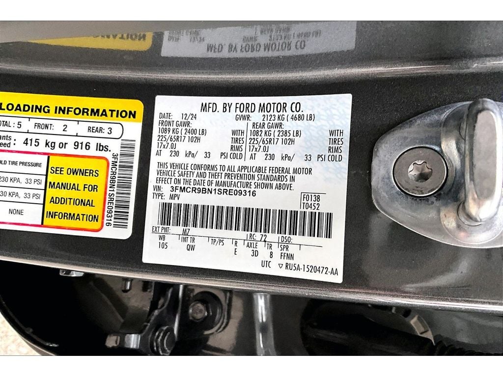 Equipment Group 200A: 17" Carbonized Gray-Painted Aluminum Wheel; Cloth with Easy-To-clean Front Bucket Seats; .8-SPD AUTO TRANSMISSION; 225/65R17 102H All Season BSW Tires; AM/FM Stereo; .1.5L ECOBOOST ENGINE. **Equipment listed is based on original vehicle build and subject to change. Please confirm the accuracy of the included equipment by calling the dealer prior to purchase.**